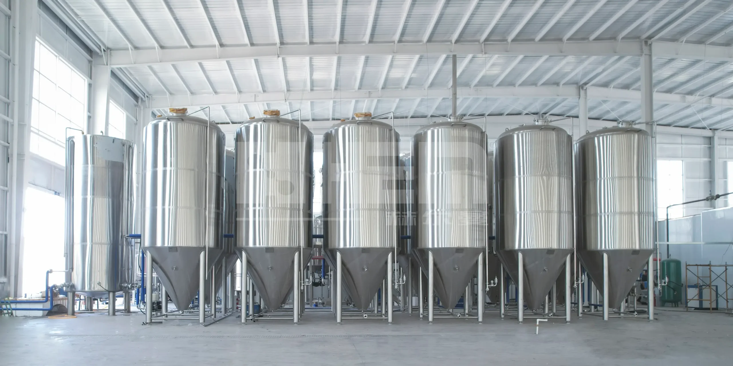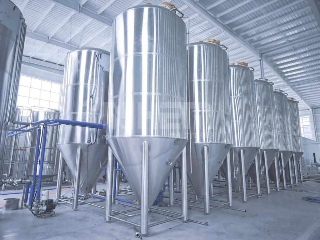 Incluye tanques de fermentación cilíndricos cónicos de acero inoxidable estándar, con el número de tanques calculado en función del ciclo de fermentación de varias cervezas.